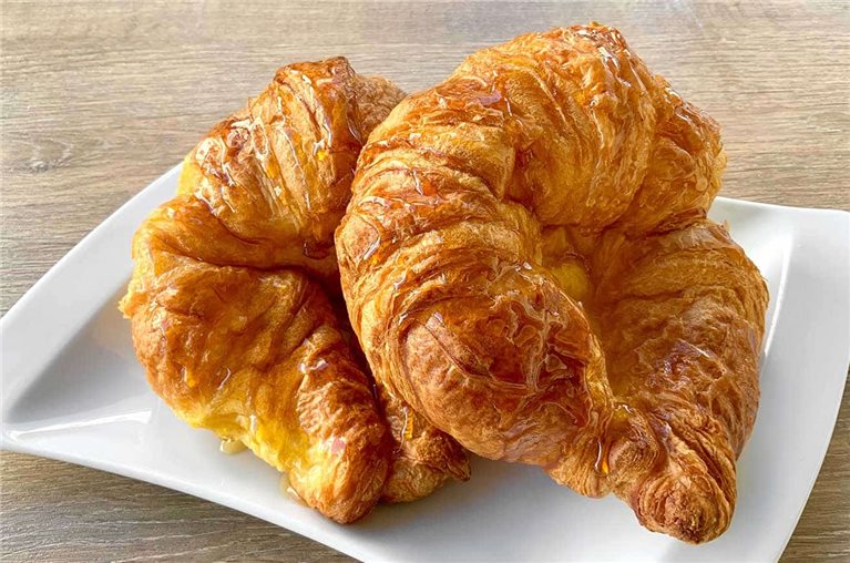 El croissant es un bollo bastante peculiar. Tiene una textura crujiente pero también esponjosa, dulce y salado a la vez, un aroma a mantequilla y un brillo especial en su superficie. No deja indiferente a nadie. Podemos consumirlo a cualquier hora, combinado con dulces en el desayuno o con embutidos para un tentempié.