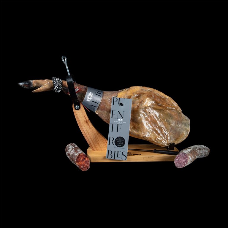 - 100% acorn-fed Iberian ham: the ham of excellent quality, as it comes from 100% Iberian pigs that have been reared in the wild, and whose feed is based on acorns and natural resources during the «montanera».