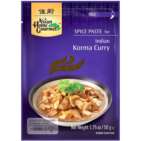 Indian Korma Curry Spice Paste 50g Asian Home Gourmet. Authentic blend ofaromaticmildspicesbased oncoriandercuminandfenugreekfor a wonderful and balanced dish fromIndian cuisineGluten free, no preservatives or colorants andsuitable for vegetarians