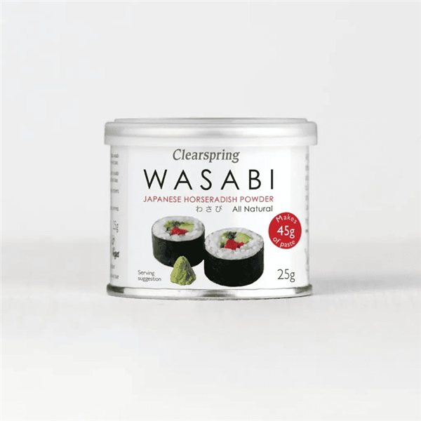 Discover the authentic Clearspring wasabi powder made from genuine wasabi root, unlike most products on the market that contain a mixture of mustard or horseradish with colorings and additives. This wasabi comes in a distinctive gray-green color that perfectly combines with its authentic spicy flavor. Traditionally used in Japanese cuisine, it is the ideal complement for sushi, soba, and tofu, adding a vibrant touch to dressings and dips. You can enjoy it in a wide variety of dishes due to its versatility. Grown in the Japanese mountains, wasabi takes two years to mature and must be treated carefully due to its perishable nature, thus ensuring a high-quality condiment for your cherished recipes. Wasabi belongs to the Brassicaceae family, which includes other condiments like horseradish and mustard, with the stem being the main component used to prepare this prized condiment.