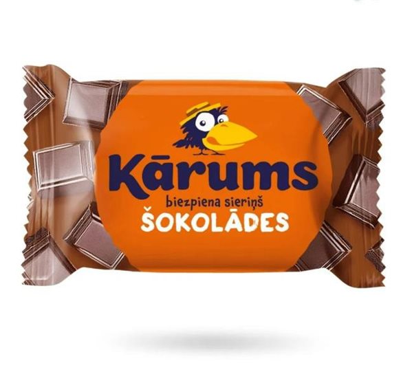 Intense and flavorful cottage cheese dessert with chocolate pieces 45G - KARUMS, made according to classic technology: Cottage cheese base (55%) with a smooth and delicate texture, perfectly balanced flavor. Chocolate coating (18%) made with quality ingredients: butter, cocoa powder, and sugar create a fine layer of chocolate. Chocolate pieces (9.8%) add a pleasant crunch and enhance the chocolate flavor.