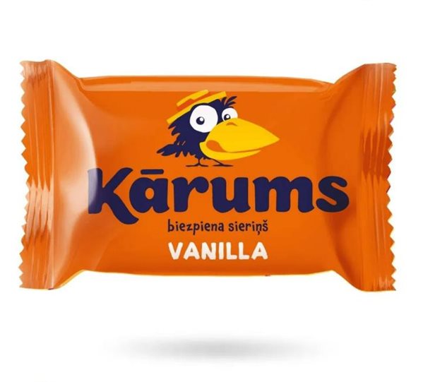 Fresh cheese type cottage cheese with vanilla flavor 45g - KARUMS: Soft fresh cheese with an intense vanilla flavor, covered with a thin layer of chocolate glaze. The classic recipe and high quality make this dessert the ideal choice for lovers of traditional sweets.