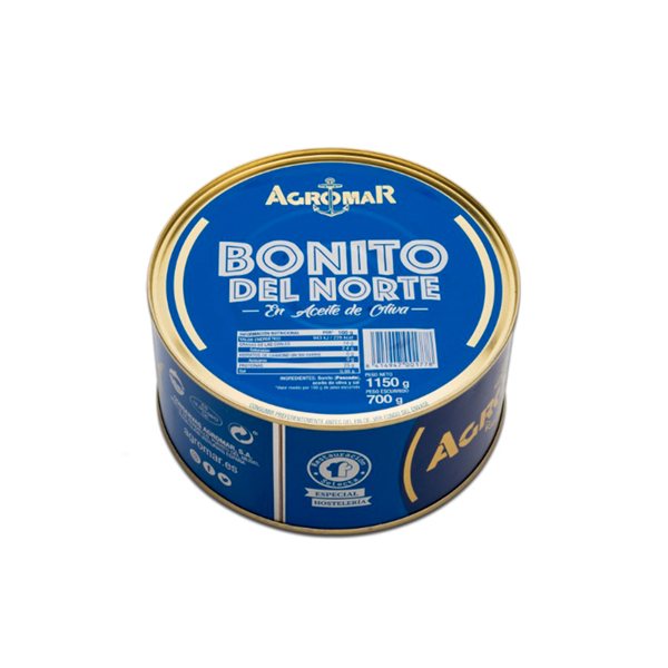 White tuna in extra virgin olive oil in glass jar, prepared with fresh loins without freezing. The tuna fish come from pole and line fishing and from MSC certified fisheries.