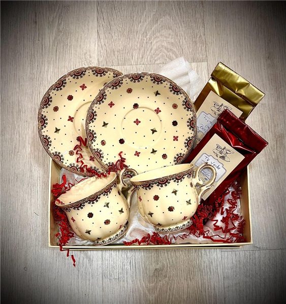 Set for 2 consisting of an elegant fine porcelain tea set and 2 infusions.