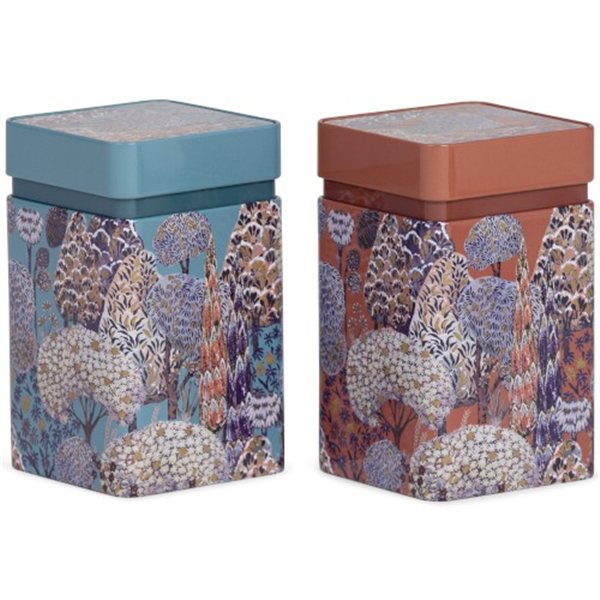 This practical set includes two square cans with a double thick lid, ideal for storing tea. One can is in bluish tones and the other in terracotta color, offering both functionality and style for your infusions. Each can measures 7 cm in length and width, and 10.9 cm in height.