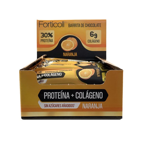 Forticoll offers with this pack a practical solution for those looking to complement their diet easily, without giving up flavor. The collagen protein bars with orange flavor are ideal for active lifestyles, combining convenience, functionality, and a pleasant taste profile.