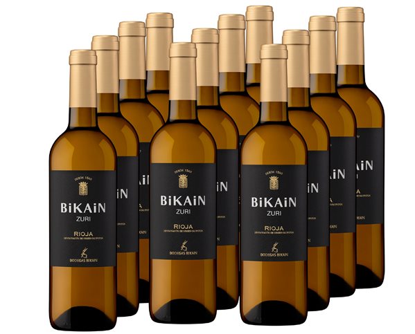 Vino Blanco DOC Rioja Bikain Zuri. Es un vino blanco joven, con gran intensidad aromática, refrescante, redondo y equilibrado.