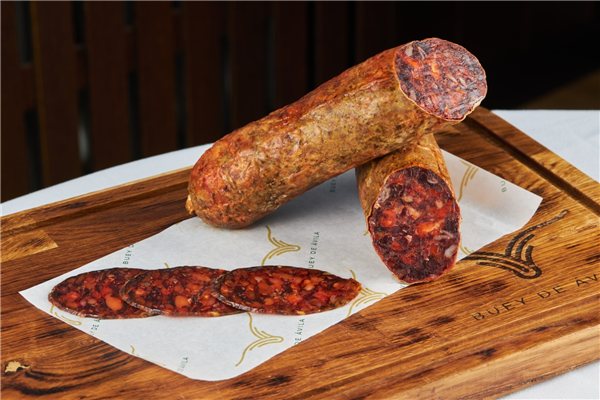 El chorizo de buey, conserva el aroma y el sabor gracias al proceso de elaboración tradicional al que lo sometemos un adobo único, y el mimo y cuidado de quien sabe que el resultado final es lo más importante, hacen que este chorizo tenga un sabor intenso, jugoso y un aspecto visual de lo más apetitoso