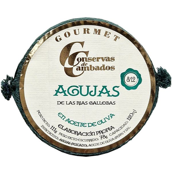 Las Agujas de las Rías Gallegas en Aceite de Oliva 8/12 uds de Conservas de Cambados son una conserva gourmet que captura toda la esencia del Atlántico.