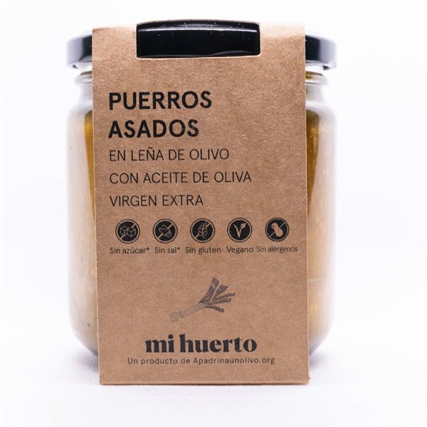 Disfruta de nuestros puerros asados a la leña de olivo, conservados en aceite de oliva virgen extra. Este producto solidario apoya la recuperación de olivos centenarios y el empleo rural en España, todo mientras deleitas tu paladar con su sabor auténtico y su toque ahumado.