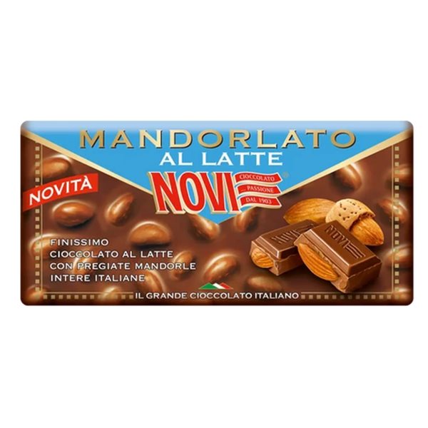 Chocolate con leche, avellanas italianas, azúcar, manteca de cacao, leche en polvo, emulgente (lecitina de soja), aromas naturales. Sin gluten.