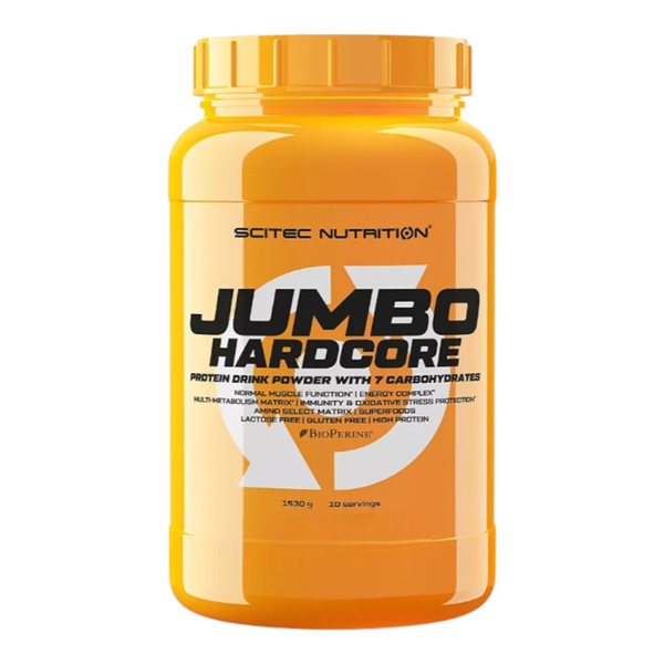Jumbo Hardcore de Scitec Nutrition ayuda a aquellas personas que quieren engordar a conseguir este superávit calórico de forma que los ingredientes que se encuentran en el producto cumplen estos requisitos. La proporción de proteína a carbohidrato en este producto es casi idéntica: 65 g de carbohidrato, 63 g de proteína con 7 g de grasa por dosis, lo que obviamente aumenta la cantidad de macronutrientes consumidos en tu dieta diaria.