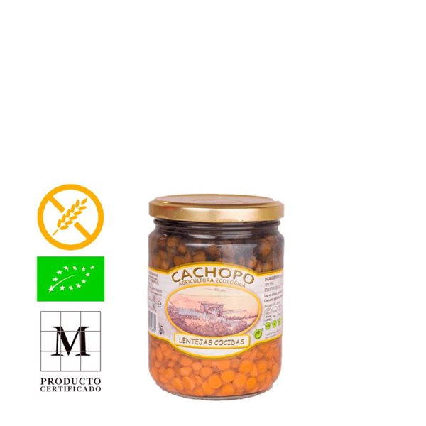 Lentejas Cocidas Ecológicas en envase de 445cc. Las lentejas cultivadas sin el empleo de pesticidas, ni abonos químicos de síntesis, han sido cocidas con agua y sal y están estupendas en ensaladas entre otros.