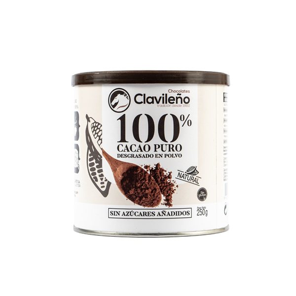 El Cacao 100% Clavileño es un producto gourmet, desgrasado y sin aditivos, que proviene de una marca con más de un siglo de tradición. Este cacao en polvo es perfecto para aquellos que buscan realzar el sabor de sus creaciones culinarias. Su único ingrediente, cacao desgrasado en polvo de alta calidad, lo convierte en la elección ideal para repostería, bebidas como el cacao a la taza, batidos, y postres tanto dulces como salados. Además, es naturalmente rico en antioxidantes, minerales esenciales como magnesio e hierro y fibra.