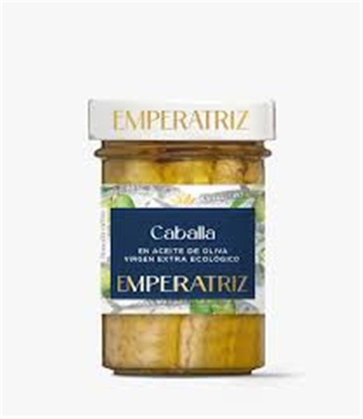 Caballa En aceite de oliva virgen extra ecológicoLa caballa (Scomber japonicus), es una especie de pez perciforme de la familia Scombridae. Una vez seleccionados los mejores lomos y pasado el proceso de cocción, el pescado se prepara y envasa. Para la elaboración de nuestras conservas, utilizamos las mejores piezas de caballa a las que añadimos nuestro aceite virgen extra ecológico especialmente seleccionado, que aporta un aroma y sabor exclusivo.