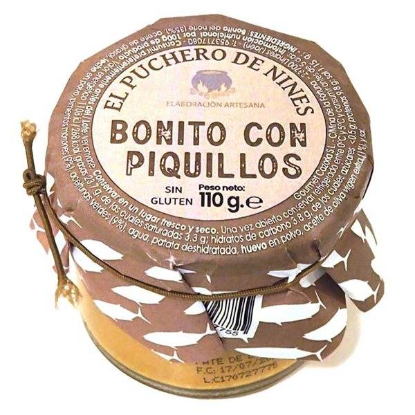 Bonito (46%), leche en polvo, aceite de girasol, pimientos del piquillo (4%), patata deshidratada, huevo en polvo, vinagre, sal, aromas y azúcar.