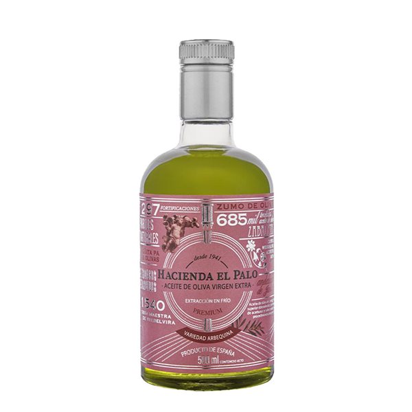 Aceite de Oliva Virgen Extra, variedad Arbequina de de Hacienda el Palo. Botella Premium de 500ml.