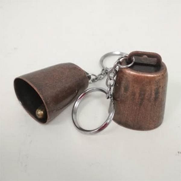Un llavero imitación de los cencerros que los animales de pasto llevan al cuello.