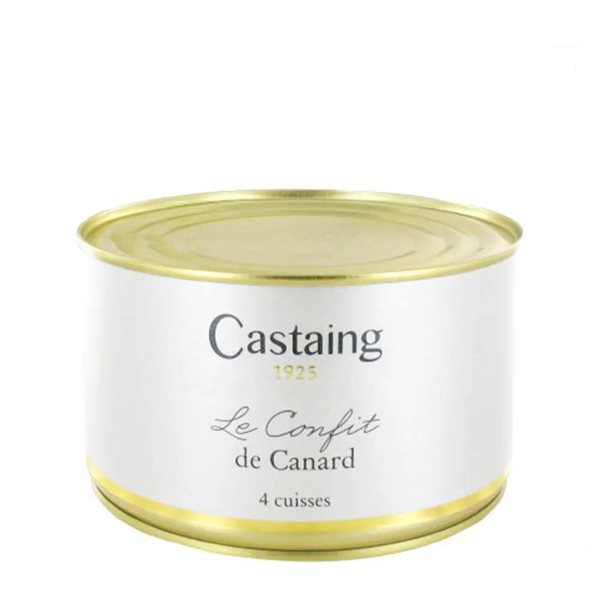Confit de pato de corral de altísima calidad, elaborado en su propia grasa por Castaing en la región de las Landas, en el suroeste de Francia.