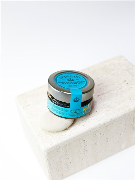 Las huevas de capelán negras Spherika destacan por su brillo intenso, textura firme y sabor delicadamente marino.