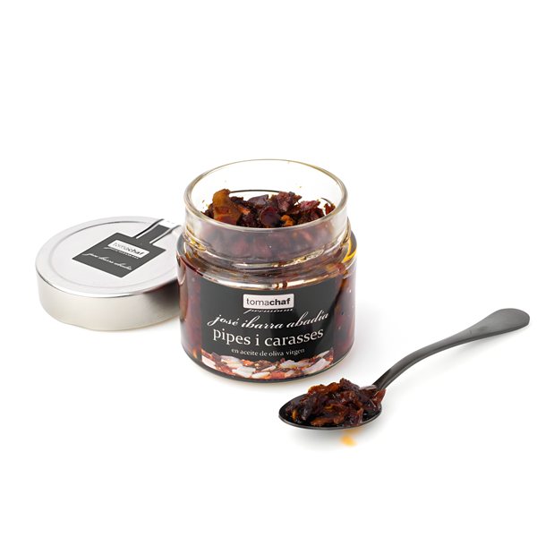 Elaborado con aceite de oliva virgen, pimiento seco, capellán, bacalao, tomate seco, ajo, piñones, ñoras y sal , ofrece un sabor intenso y profundamente mediterráneo.