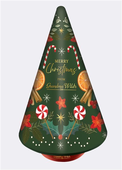 Esta lata festiva de 250 g es mucho más que un estuche de galletas: se presenta con un diseño estampado en relieve en forma de árbol navideño adornado con bastones de caramelo, y al abrirse comienza a girar al ritmo de una melodía navideña clásica. En su interior contiene una selección de galletas tradicionales de jengibre y dulces navideños que combinan sabor y presentación elegante. Este artículo es ideal como regalo gourmet para la temporada navideña o como pieza decorativa reutilizable.