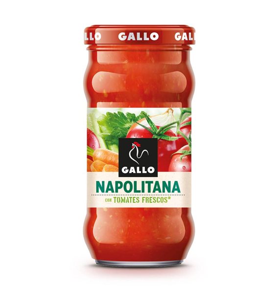 La salsa Gallo Napolitana está hecha con tomates maduros y especias naturales, ofreciendo un sabor auténtico y suave. Perfecta para acompañar espaguetis, macarrones o cualquier receta de cocina italiana. Formato de 350 gramos.