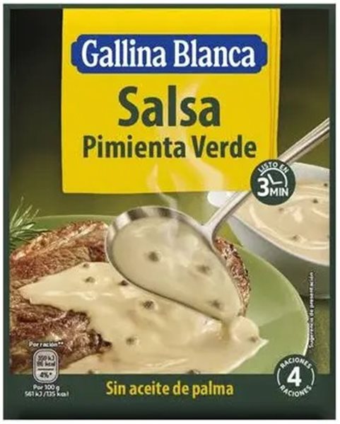 Ingrédients : maltodextrine, huile de tournesol, farine de blé, amidon modifié de pommes de terre, arômes, sel, jaune d'œuf, dextrose, sirop de glucose, crème, extrait de levure, protéines du lait, poivre vert 1,7%, amidon de maïs, lait écrémé, huile d'olive. Peut contenir des traces de soja, céleri, poisson, crustacés, mollusques, moutarde, lupin.