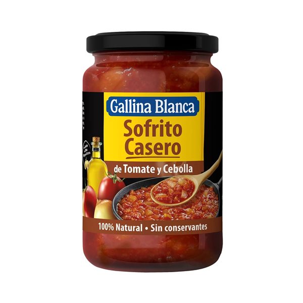 Le Sofrito Casero Gallina Blanca est la base parfaite pour préparer vos plats préférés avec toute la saveur de la maison. Fabriqué avec des tomates fraîches, de l'oignon, de l'ail et une touche d'huile d'olive, ce sofrito reproduit la recette traditionnelle, apportant une saveur naturelle et authentique aux ragoûts, pâtes, riz et viandes.