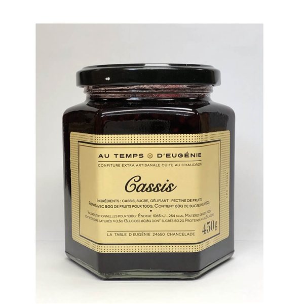 Ingrédients : cassis, sucre, gélifiant (pectine de fruits). Préparé avec 50 gr de fruits pour 100 gr. Contient 60 gr de sucre pour 100 gr.Au Temps d'Eugénie, situé à Coulounieix-Chamiers en Dordogne (24), valorise son savoir-faire authentique en ne travaillant que des matières premières de grande qualité avec des méthodes de fabrication restées artisanales.