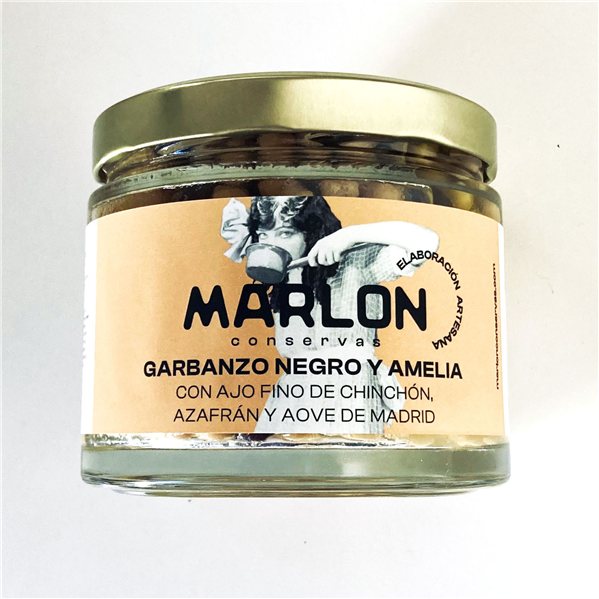 Pois chiches noirs et Amelia avec ail fin de Chinchón, safran et huile d’olive vierge extra de Madrid.