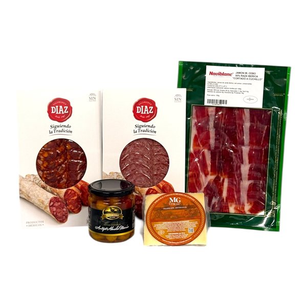 Pack gourmet pour profiter du football à la maison avec du jambon ibérique, des charcuteries, du fromage affiné et des olives.