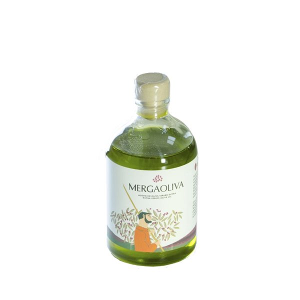 Boîte de 30 bouteilles d'Huile d'Olive Vierge Extra de variété Picual conditionnée en bouteille en verre de 100 ml. Mergaoliva Cénit Picual est un AOVE obtenu à partir d'olives mûres (de couleur violette), récoltées au début de novembre, à un moment clé de la maturation.