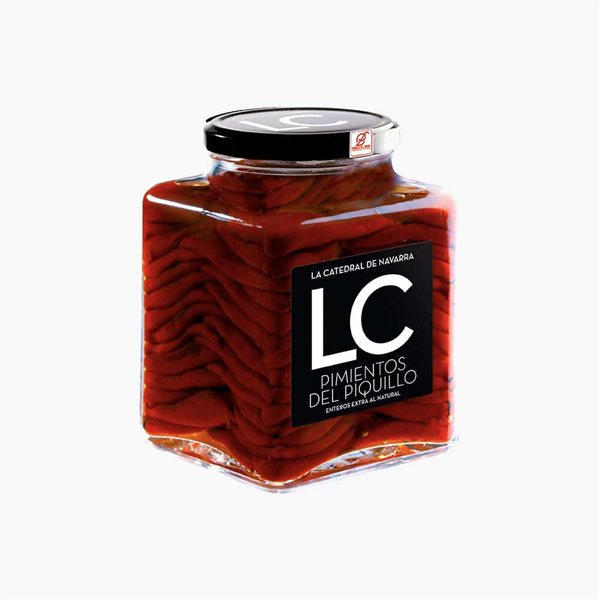 Ils ont été cuisinés de manière traditionnelle. Rôtis à la flamme directe et pelés à la main, ils ont été élaborés à sec pour ne pas diluer l'intensité du piquillo fraîchement sorti du feu. Ils sont de chair fine et sont sous Appellation d'Origine Contrôlée : Piquillo de Lodosa.