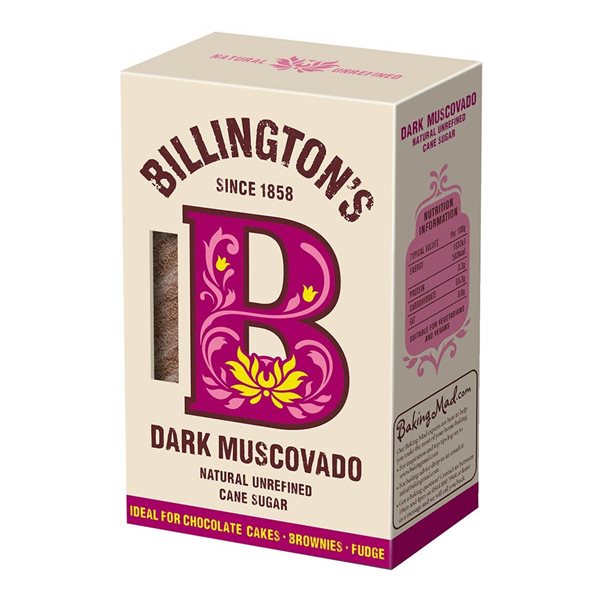 Le Muscovado Sugar de Billington's est un sucre de canne non raffiné parfait pour la préparation de gâteaux au chocolat, aux fruits et aux brownies.
