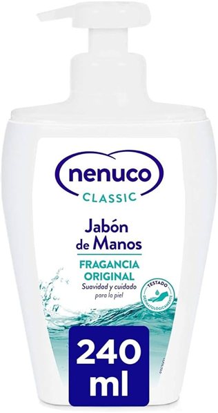 Savon pour les mains Nenuco Classic 240 ml, avec le parfum original de Nenuco. Doux pour la peau de toute la famille.