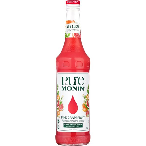 Pure by Monin Pink Grapefruit ist ein natürlicher Rosa-Grapefruit-Konzentratsaft ohne zugesetzten Zucker oder Süßstoffe, hergestellt ausschließlich aus Saft und natürlichen Aromen.