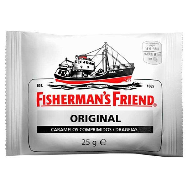 Die Fisherman’s Friend Original Bonbons sind intensive und erfrischende Bonbons, bekannt für ihre balsamische Wirkung. Ideal, um den Hals zu beruhigen und zu jedem Zeitpunkt des Tages Frische zu genießen.